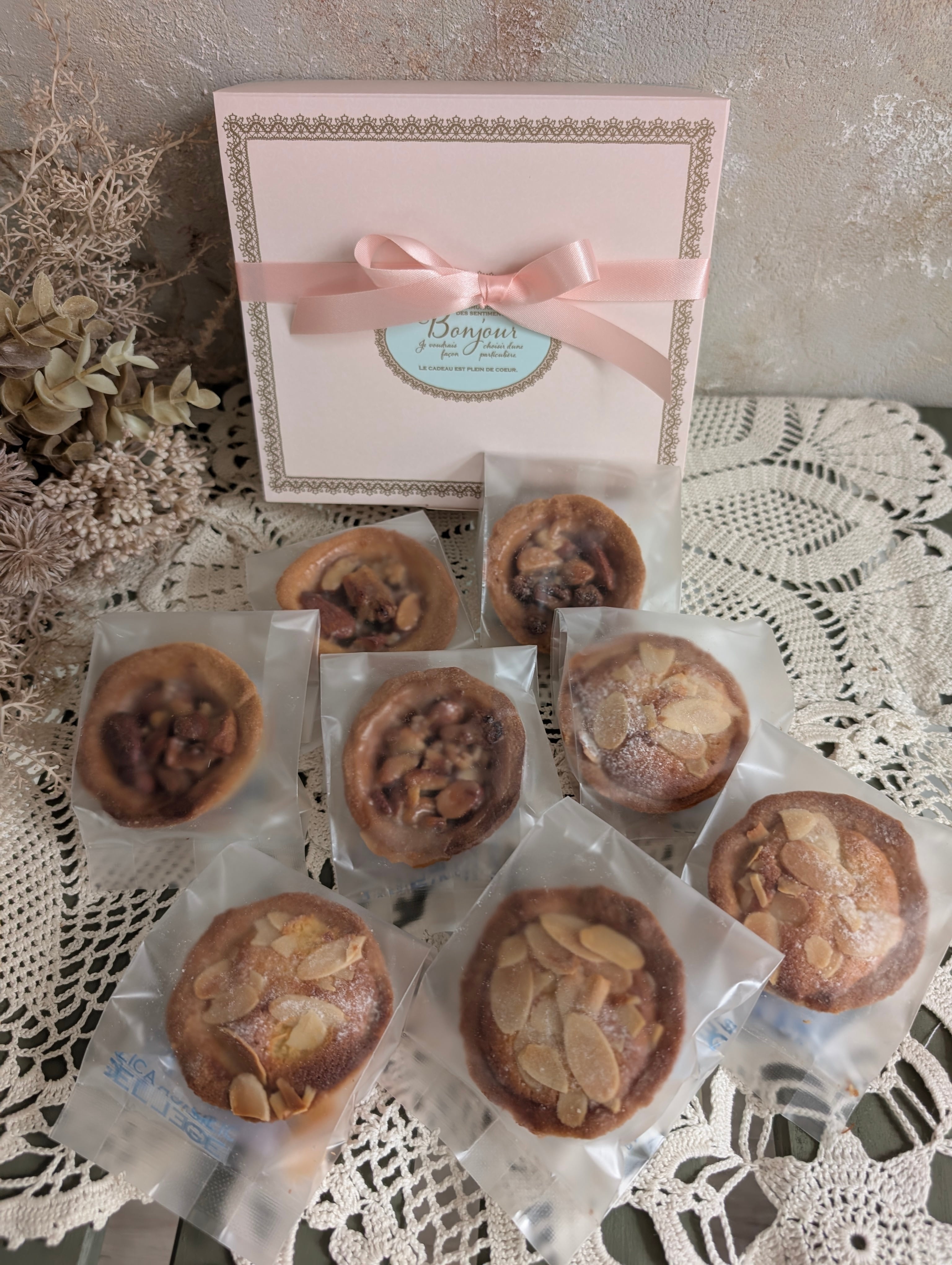 薄力小麦粉(国産)、無塩バター、粉糖、クルミ、アーモンド、マカダミアナッツ、生クリーム、グラニュー糖、はちみつ、卵黄、塩